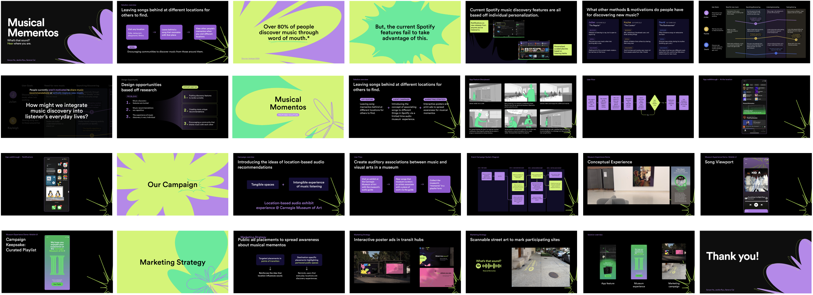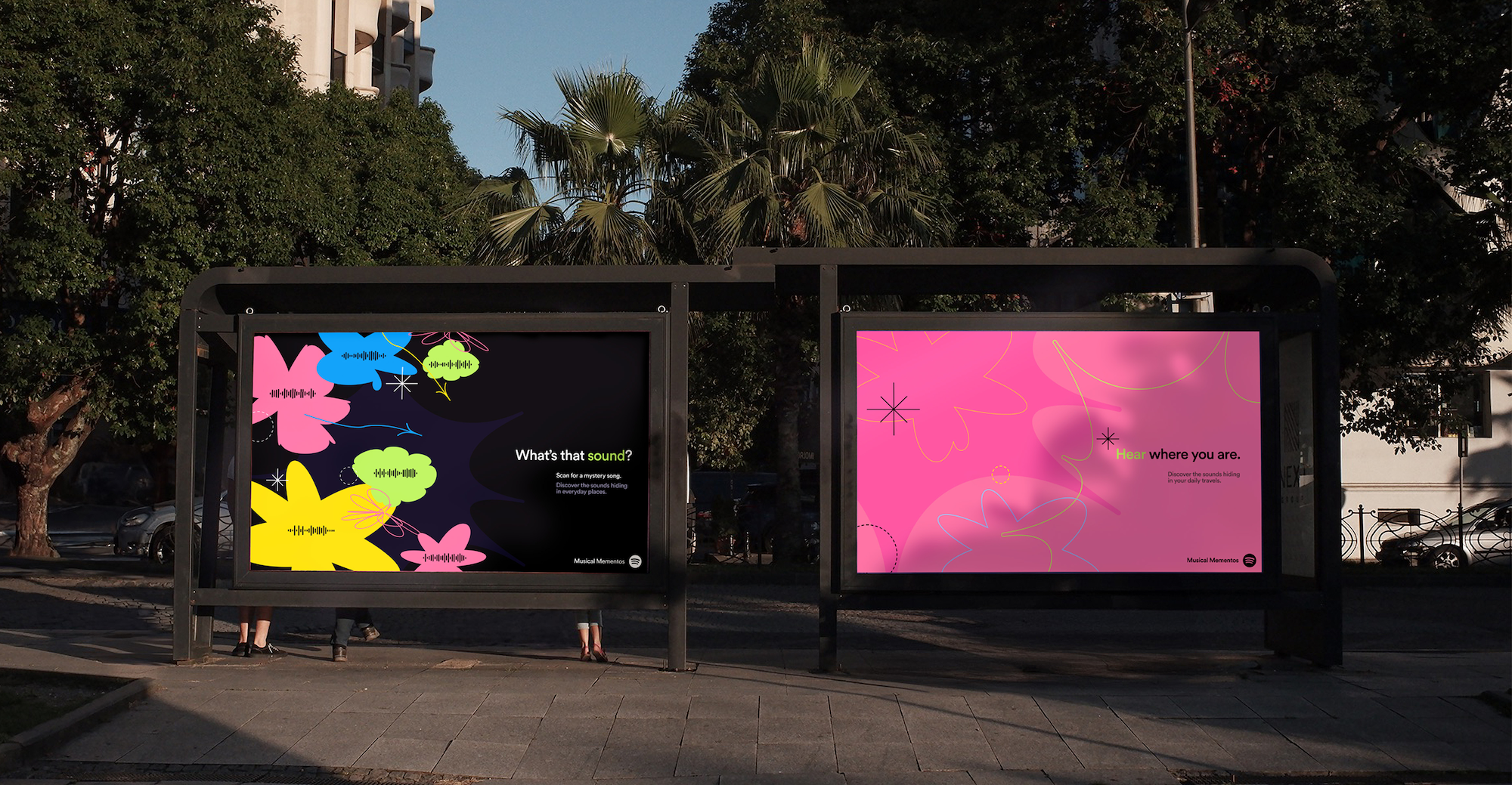 The visual design of our proposed campaign and slide deck was inspired by Spotify Design's playful brand kit, which matches the energy of discovering a completely new genre of music during daily travels.